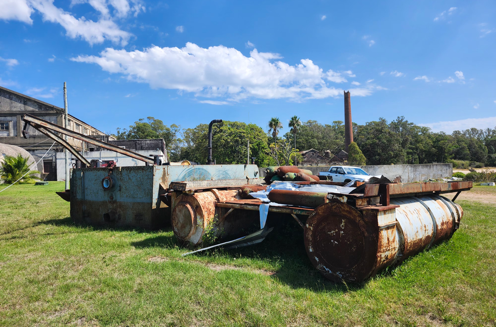 5. BALSA PARA DRAGADO con motobomba, cubierta de madera y pontones laterales estabilizadores. Incluye Motor Volvo Diesel de 6 cilindros.